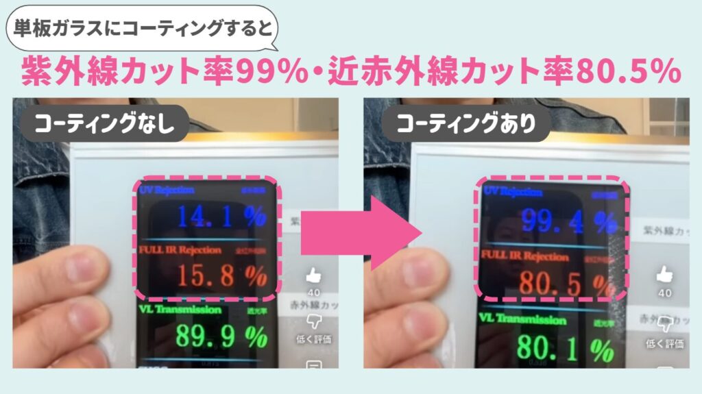 節電ガラスコートと冷暖ガラスシールドの解説動画はこちらをチェック↓